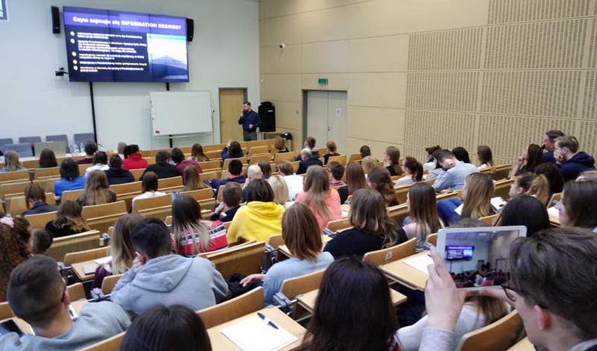 Biuro Karier UPH zorganizowało spotkanie dla studentów z firmą INFORMATION DESIRED, która gościła na naszej uczelni 28.02.2019 r. Tomasz Kuzak, twórca startup-u z Doliny Krzemowej opowiadał o tym, dlaczego dziś Internet nie działa jako narzędzie dla przedsiębiorców do pozyskiwania klientów. Przedstawił pomysł i zasady działania firmy oraz zaprosił studentów do włączenia się w jej działalność.