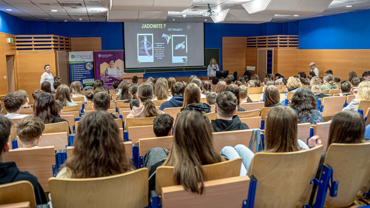 O godzinie 9:00 w Auli 3 na Wydziale Nauk Ścisłych i Przyrodniczych wszystkich gości przywitała Pani Dziekan WNSP, dr hab. Marzena Stańska, prof. uczelni, a po przywitaniu uczniowie mogli wysłuchać dwóch mini wykładów oraz wziąć udział w quizie.