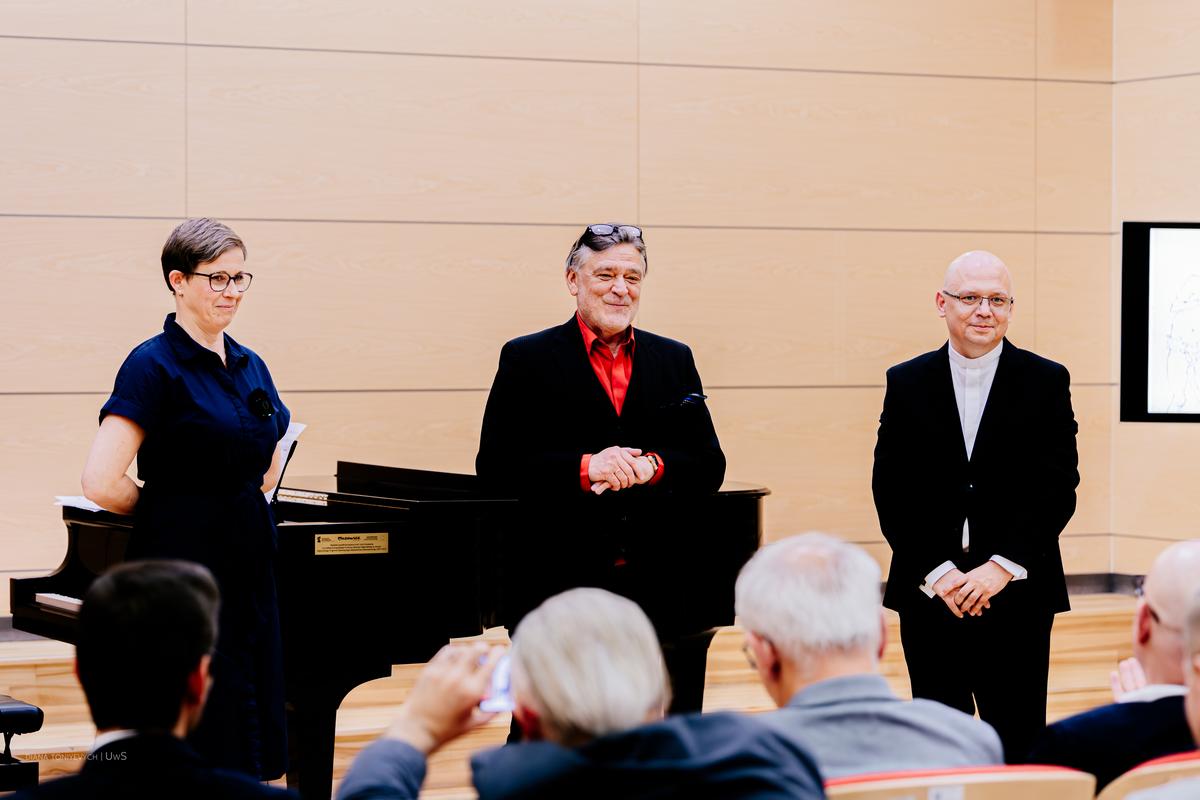 Rozważania na temat miejsca sztuki religijnej we współczesnym świecie były kontynuowane podczas panelu dyskusyjnego. Jako rozmówcy dołączyli do niego ks. dr Robert Mirończuk (dyrektor Muzeum Diecezjalnego, UwS) oraz Paweł Borkowski (autor projektów plastycznych w mediach tradycyjnych i cyfrowych w kraju i za granicą).